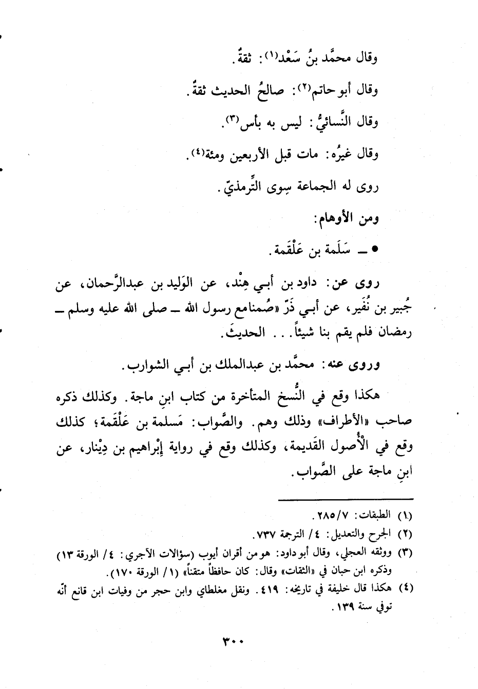 (3) ووثقه العجلي، وَقَال أبو داود: هو من أقران أيوب (سؤالات الآجُرِّيّ: 4 / الورقة 13) ، وذَكَره ابنُ حِبَّان في "الثقات" وَقَال: كان حافظا متقنا" (1 / الورقة 170) .