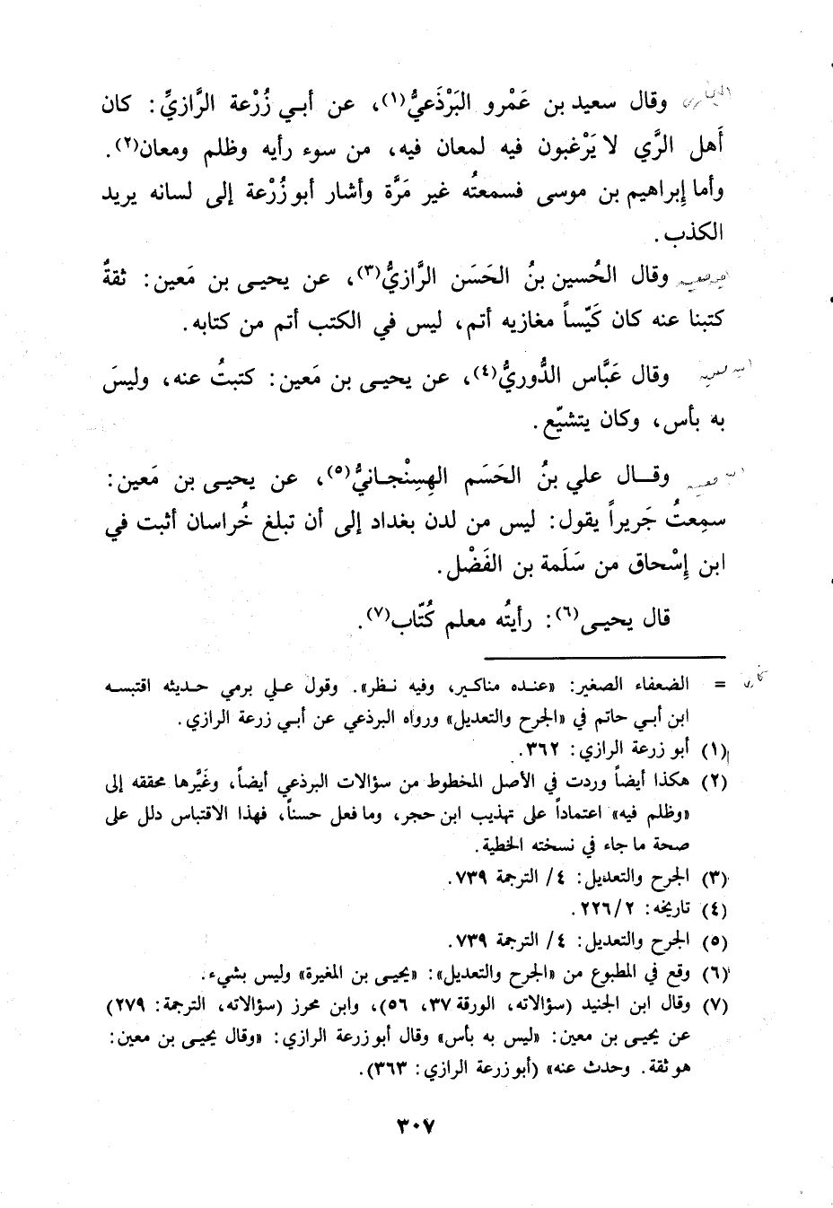 (6) وقع في المطبوع من"الجرح والتعديل": يحيى بن المغيرة"وليس بشيءٍ (7) وَقَال ابن الجنيد (سؤالاته، الورقة 37، 56) ، وابن محرز (سؤالاته، الترجمة: 279) عن يحيي بن مَعِين: ليس به بأس"وَقَال أبو زُرْعَة الرازي: وَقَال يحيى بن مَعِين: هو ثقة. وحدث عنه" (أبو زُرْعَة الرازي: 363) .