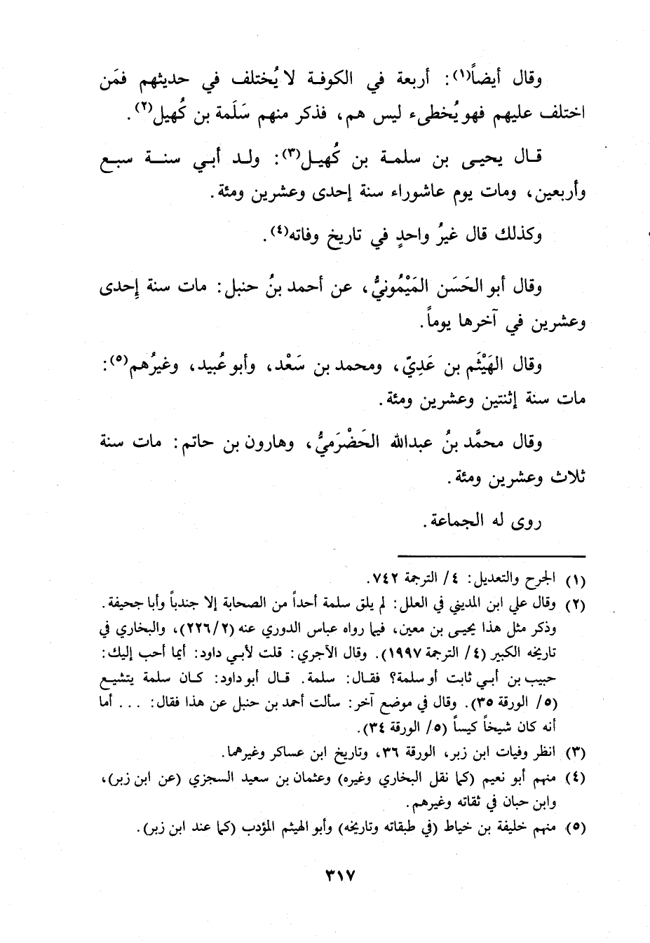 (3) انظر وفيات ابن زبر، الورقة 36، وتاريخ ابن عساكر وغيرهما (4) منهم أبو نعيم (كما نقل البخاري وغيره) وعثمان بن سَعِيد السجزي (عن ابن زبر) ، وابن حبان في ثقاته وغيرهم.