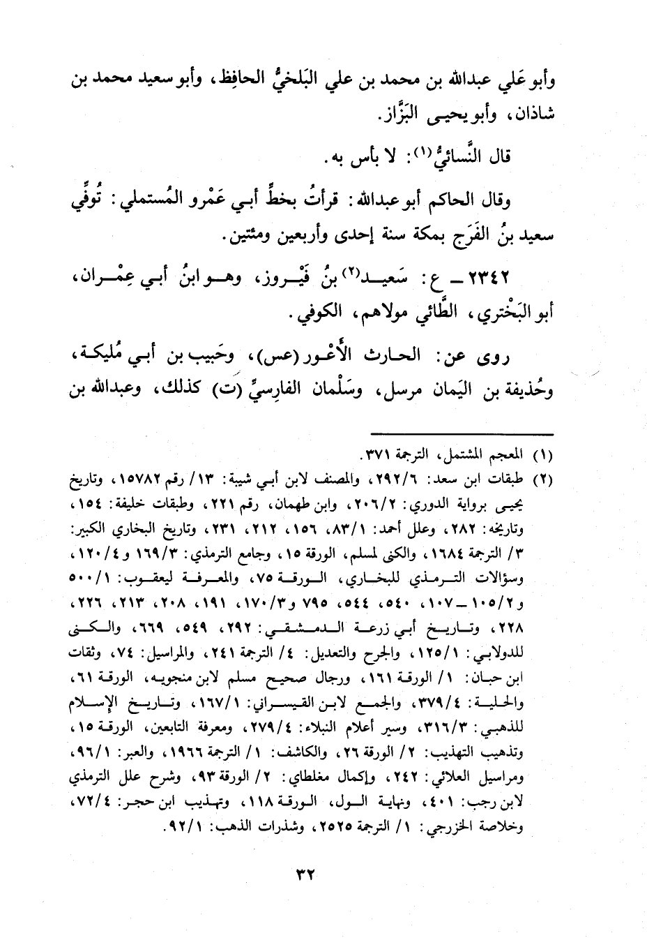 2342 - ع: سَعِيد بن فيروز (2) ، وهو ابن أَبي عِمْران، أبوالبختري، الطائي مولاهم، الكوفي.