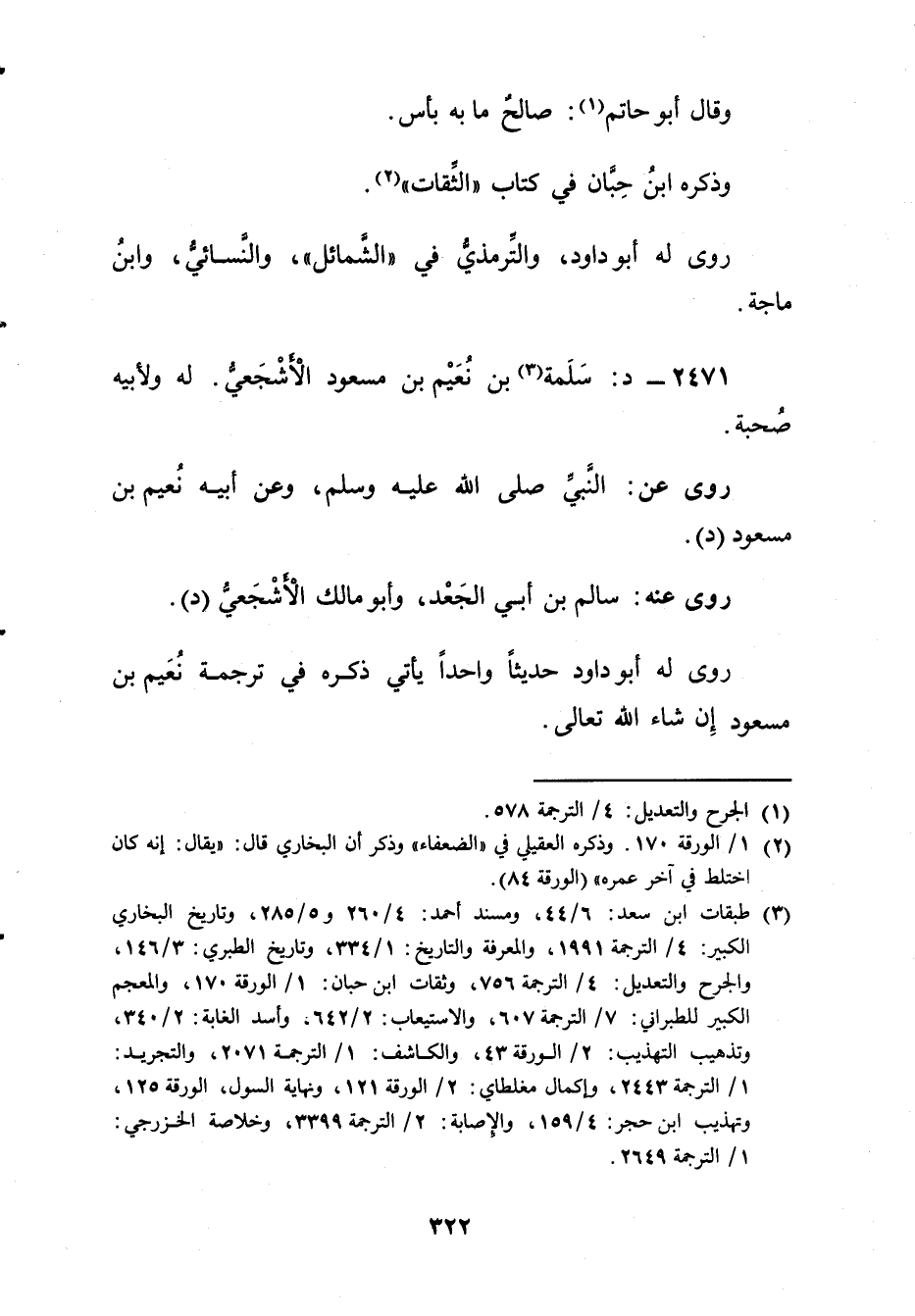 (3) طبقات ابن سعد: 6 / 44، ومسند أحمد: 4 / 260 و5 / 285، وتاريخ البخاري الكبير: 4 / الترجمة 1991، والمعرفة والتاريخ: 1 / 334، وتاريخ الطبري: 3 / 146، والجرح والتعديل: 4 / الترجمة 756، وثقات ابن حبان: 1 / الورقة 170، والمعجم الكبير للطبراني: 7 / الترجمة 607، والاستيعاب: 2 / 642، وأسد الغابة: 2 / 340، وتذهيب التهذيب: 2 / الورقة 43، والكاشف: 1 / الترجمة 2071، والتجريد: 1 / الترجمة 2443، وإكمال مغلطاي: 2 / الورقة 121، ونهاية السول، الورقة 125، وتهذيب ابن حجر: 4 / 159، والاصابة: 2 / الترجمة 3399، وخلاصة الخزرجي: 1 / الترجمة 2649.