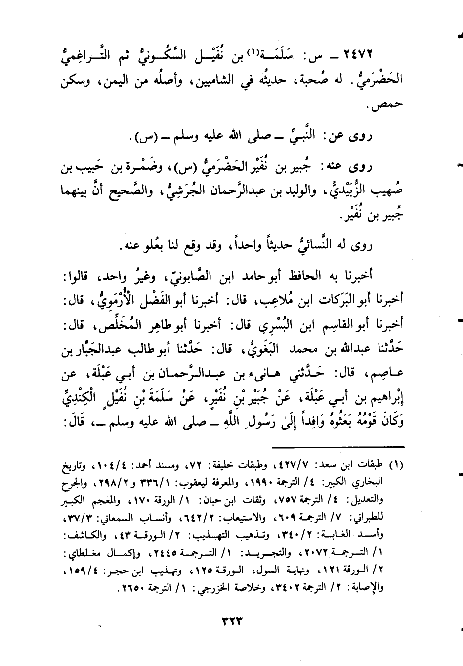 2472 - س: سَلَمَة بن نفيل السكوني ثم التراغمي الحضرمي (1) .