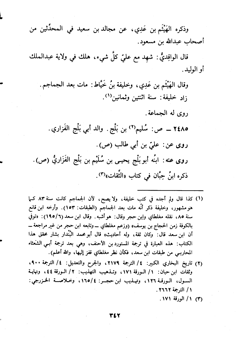 2485 - ص: سليم بن بلج (2) . والد أبي بلج الفزاري.