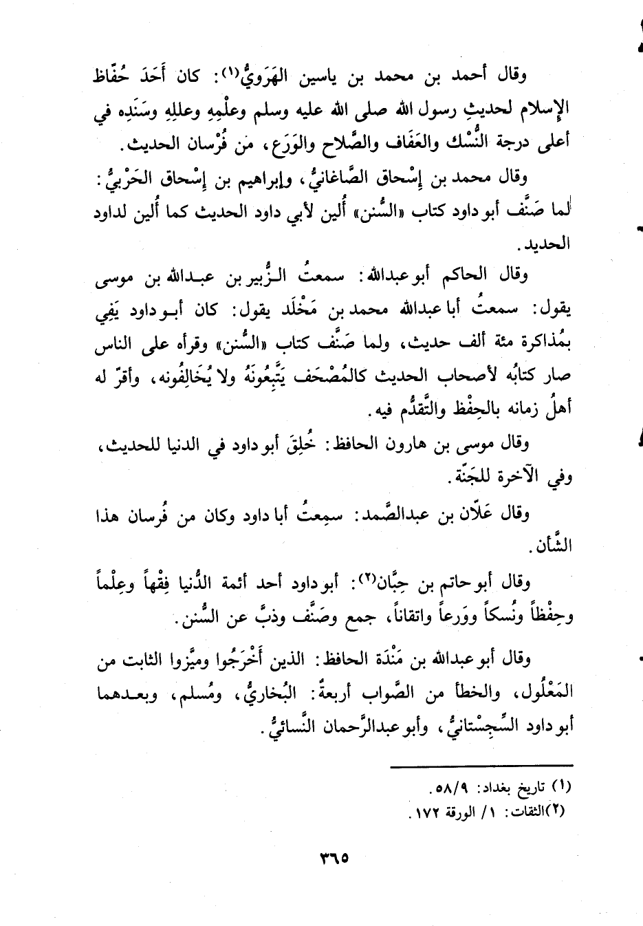 وَقَال مُحَمَّد بْن إِسْحَاقَ الصاغاني، وإبراهيم بْن إِسْحَاقَ الحربي: لما صنف أَبُو داود كتاب"السنن"ألين لأبي داود الحديث كما الين لداود الحديد.