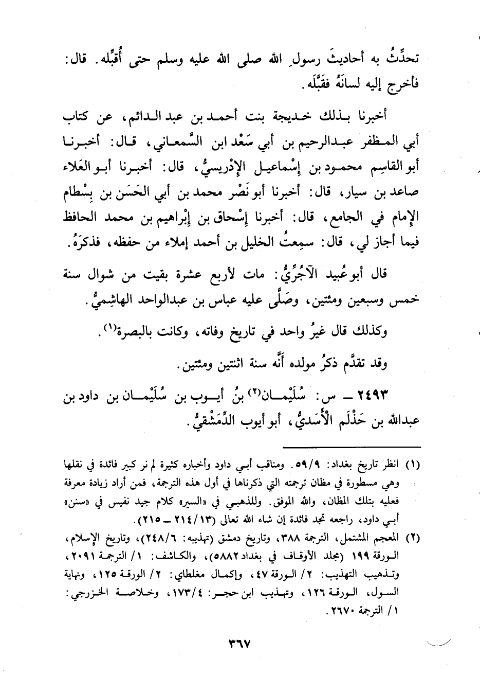 2493 - س: سُلَيْمان بن أيوب بن سُلَيْمان بن داود بن عَبد اللَّهِ بن حذلم الأسدي (2) ، أَبُو أيوب الدمشقي
