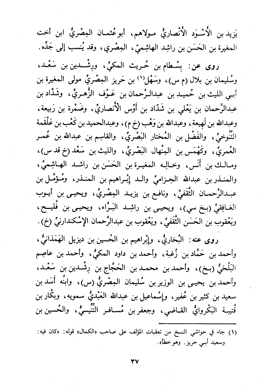 (1) جاء في حواشي النسخ من تعقبات المؤلف على صاحب "الكمال" قوله: كان فيه: وسَعِيد أبي حريز. وهو خطأ"