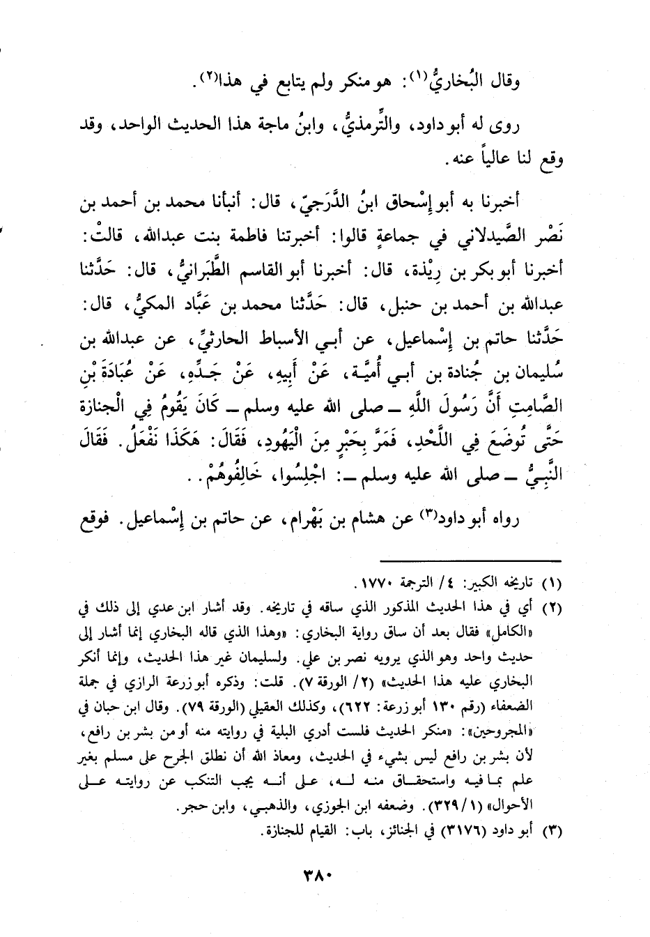 رواه أَبُو داود (3) عَنْ هشام بْن بهرام، عَنْ حاتم بن إسماعيل. فوقع