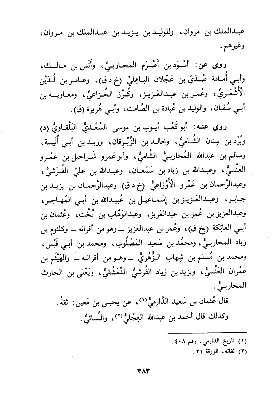 قال عثمان بن سَعِيد الدرامي (1) ، عَنْ يحيى بْن مَعِين: ثقة.