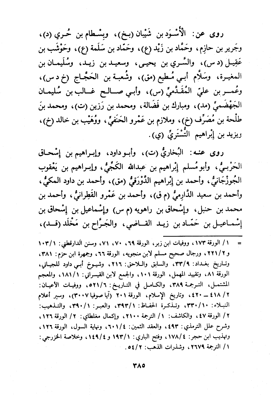 = 1 / الورقة 173، ووفيات ابن زبر، الورقة 69، 70، 71، وسنن الدَّارَقُطنِيّ: 1 / 103 و2 / 221، ورجال صحيح مسلم لابن منجويه، الورقة 66، وجمهرة ابن حزم: 381، وتاريخ بغداد: 9 / 33، والسابق واللاحق: 216، وشيوخ أبي داود للجياني، الورقة 81، وتقييد المهمل، الورقة 101، والجمع لابن القيسراني: 1 / 181، والمعجم المشتمل، الترجمة 389، والكامل في التاريخ: 6 / 521، ووفيات الاعيان: 2 / 418 - 420، وتاريخ الاسلام، الورقة 201 (آيا صوفيا 3007) ، وسير أعلام النبلاء: 10 / 330، وتذكرة الحفاظ: 1 / 393، والعبر: 1 / 390، والتذهيب: 2 / الورقة 47، والكاشف: 1 / الترجمة 2100، وإكمال مغلطاي: 2 / الورقة 126، وشرح علل التِّرْمِذِيّ: 493، والعقد الثمين: 4 / 601، ونهاية السول، الورقة 126، وتهذيب ابن حجر: 4 / 178، وفتح الباري: 1 / 193 و4 / 149، وخلاصة الخزرجي: 1 / الترجمة 2679، وشذرات الذهب: 2 / 54.