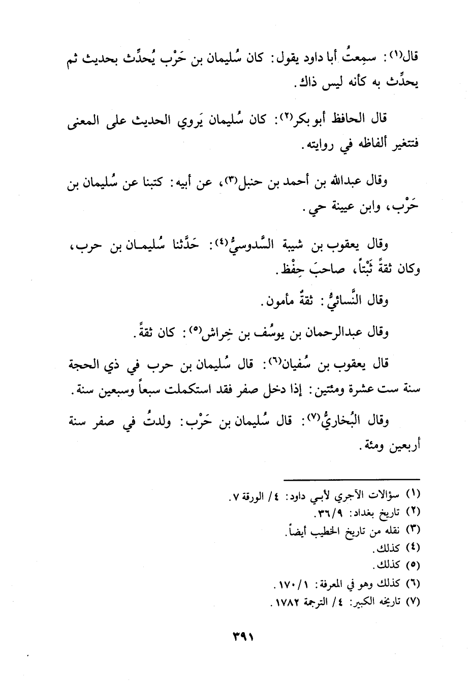 قال يعقوب بْن سُفْيَان (6) : قال سُلَيْمان بْن حرب فِي ذي الحجة سنة ست عشرة ومئتين: إذا دخل صفر فقد استكملت سبعا وسبعين سنة.