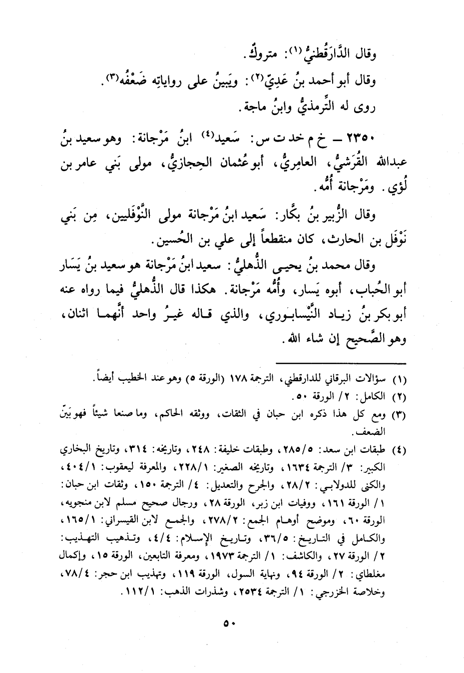 (1) سؤالات البرقاني للدار قطني، الترجمة 178 (الورقة 5) وهو عند الخطيب أيضا.