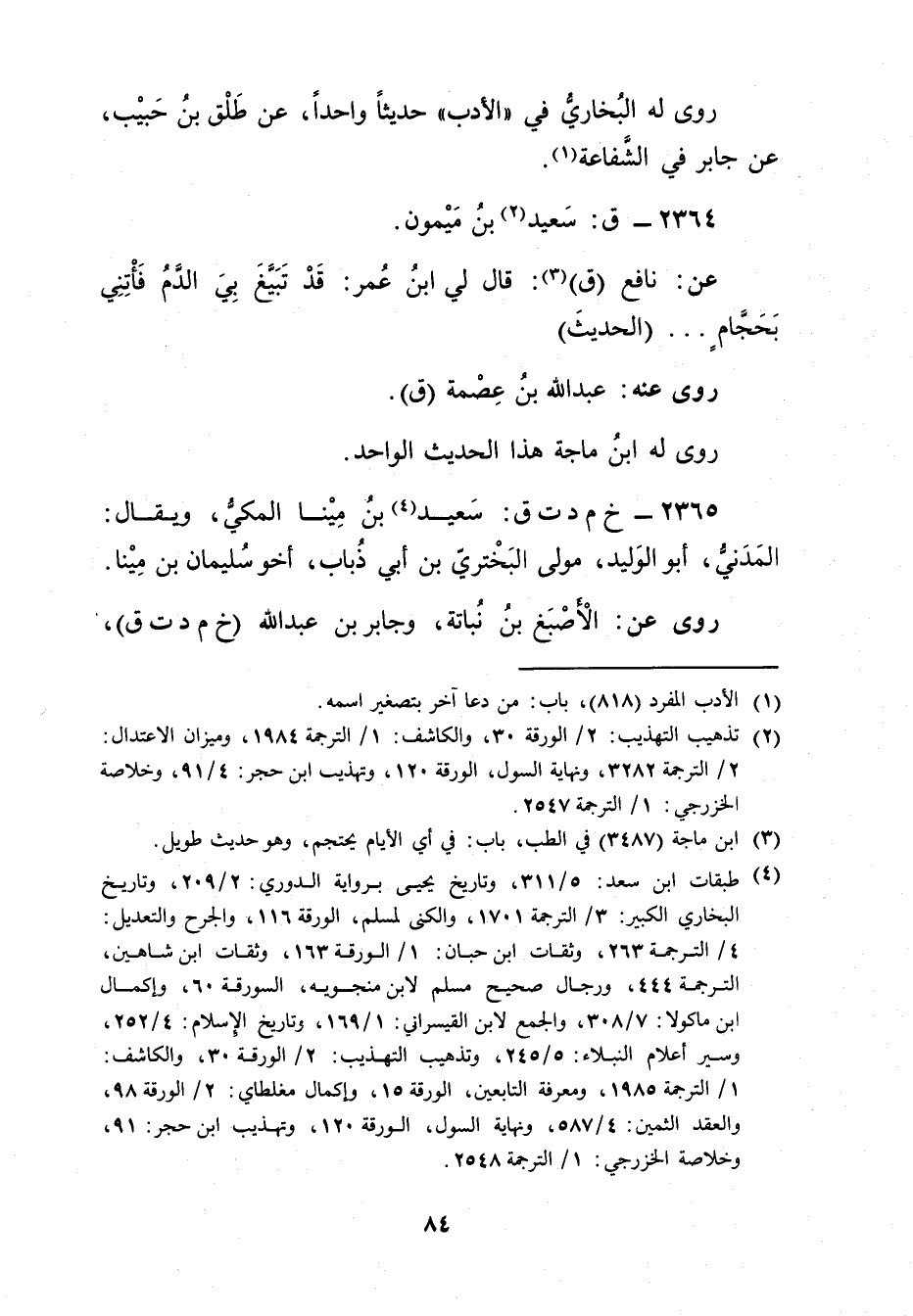 (2) تذهيب التهذيب: 2 / الورقة 30، والكاشف: 1 / الترجمة 1984، وميزان الاعتدال: 2 / الترجمة 3282، ونهاية السول، الورقة 120، وتهذيب ابن حجر: 4 / 91، وخلاصة الخزرجي: 1 / الترجمة 2547.