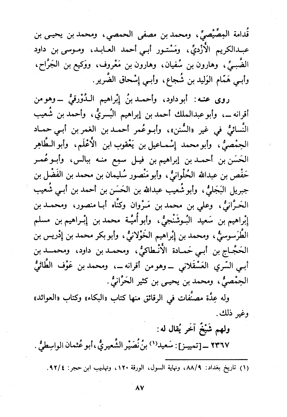 2367 - تمييز: سَعِيد بن نصير الشعيري (1) ، أَبُو عُثْمَان الواسطي.