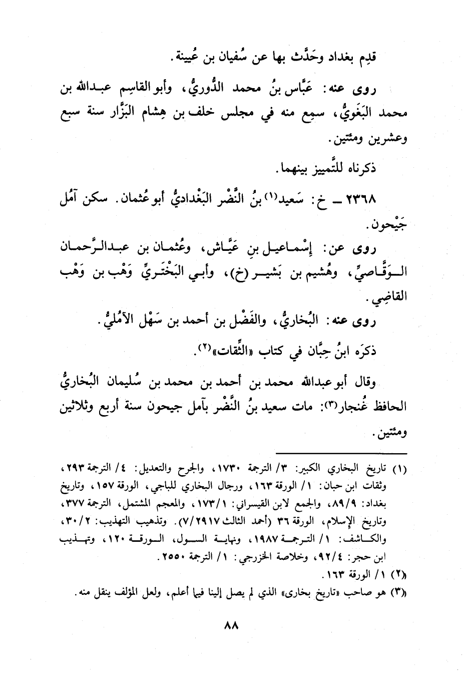 2368 - خ: سَعِيد بن النضر البغدادي أَبُو عُثْمَان (1) .