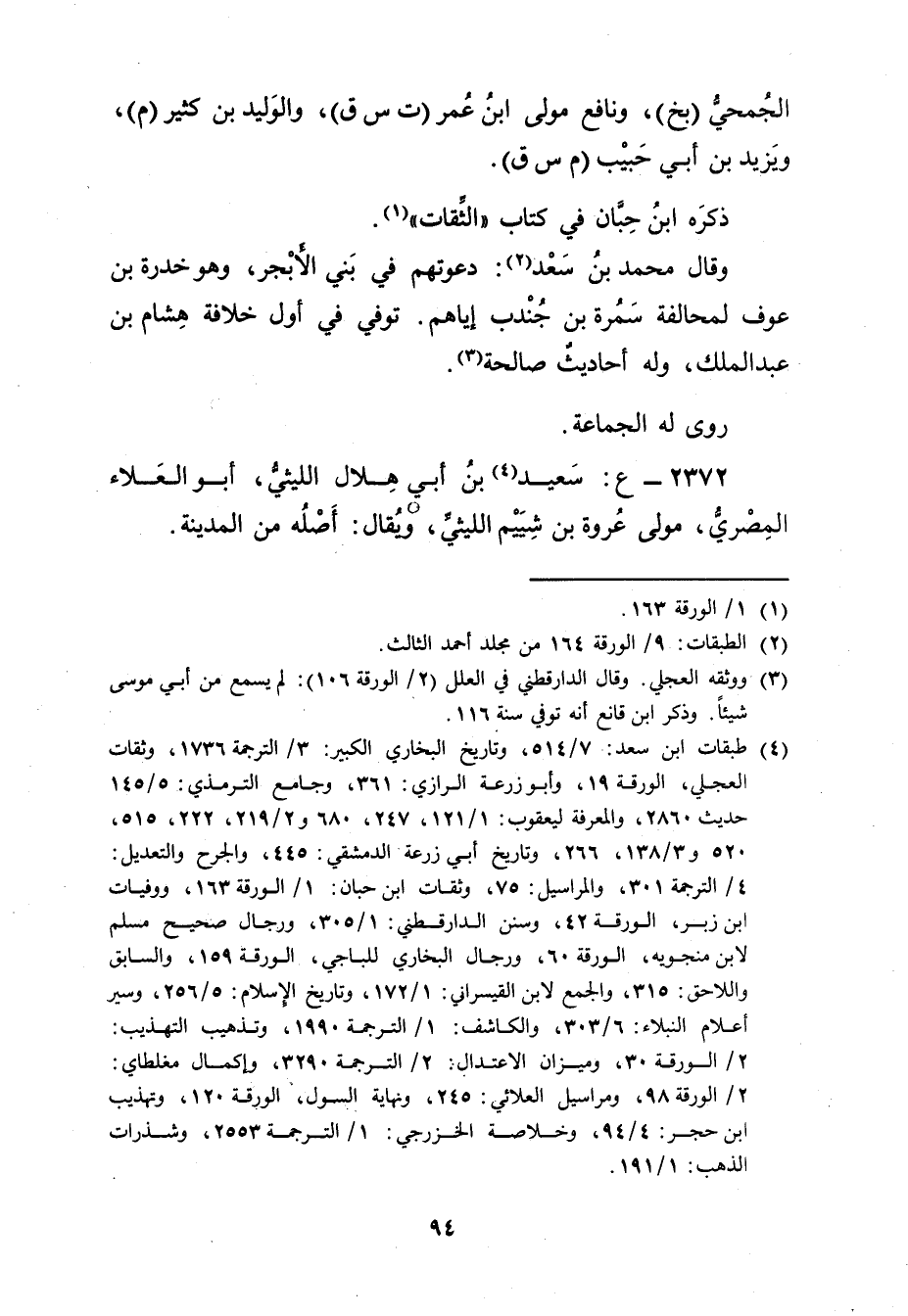 2372 - ع: سَعِيد بن أَبي هلال الليثي (4) ، أَبُو العلاء المِصْرِي، مولى عروة بْن شييم الليثي، ويُقال: أصله من المدينة.