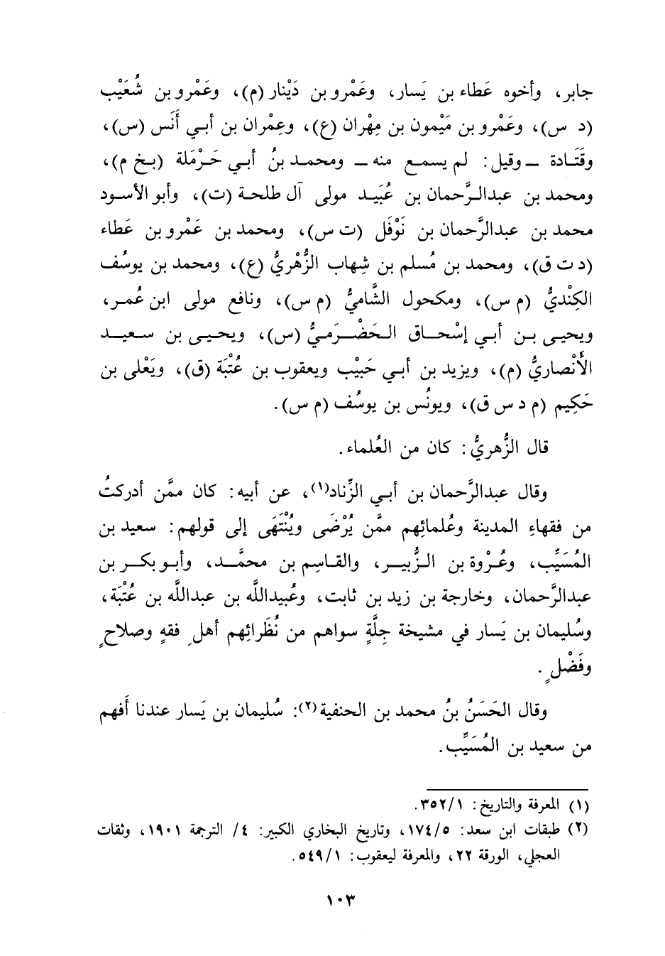 وَقَال الْحَسَن بْن مُحَمَّد بْن الحنفية (2) : سُلَيْمان بْن يسار عندنا افهم من سَعِيد بْن المُسَيَّب.