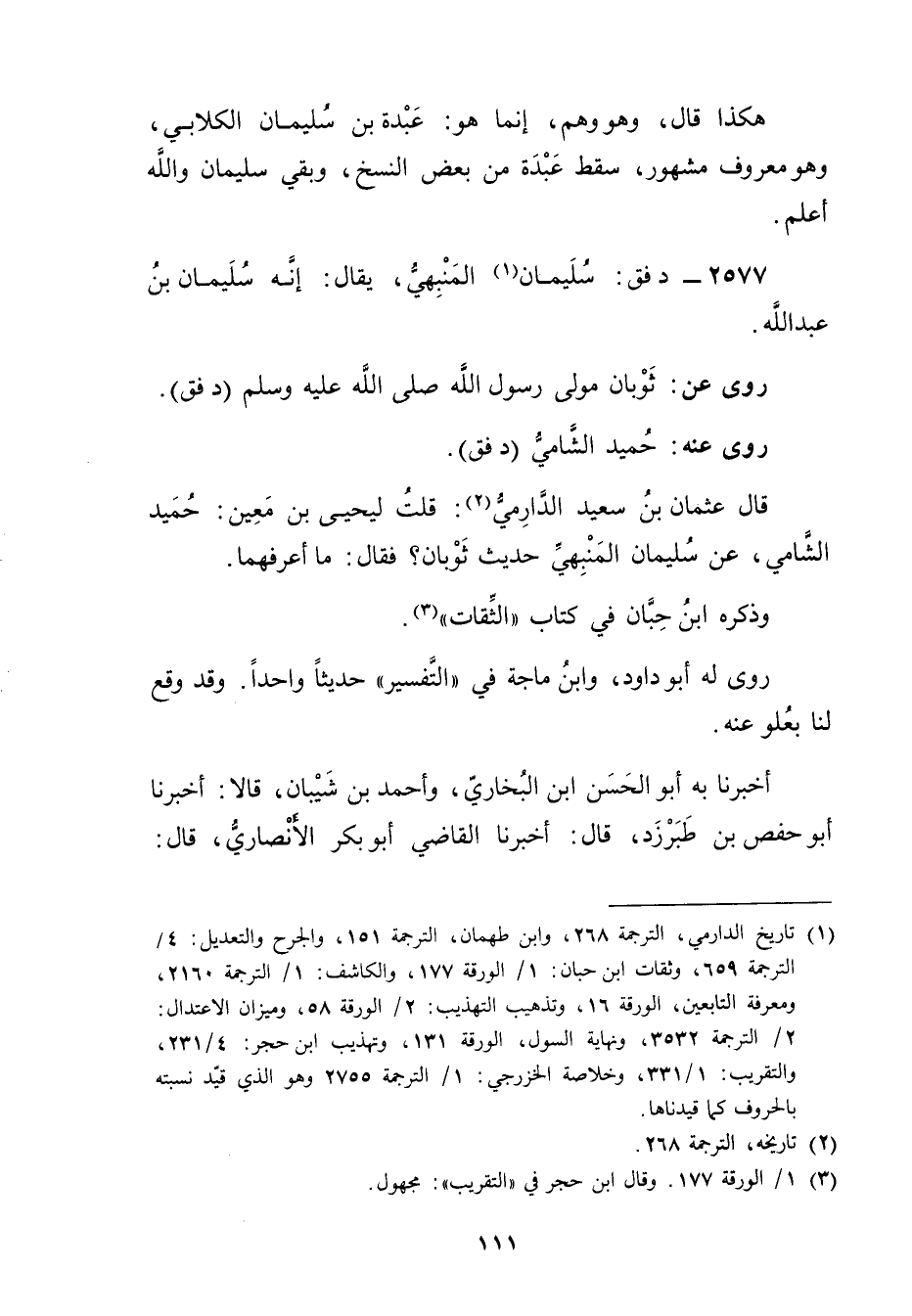 2577 - د فق: سُلَيْمان المنبهي (1) ، يقال: أنه سُلَيْمان بْن عَبد اللَّهِ.