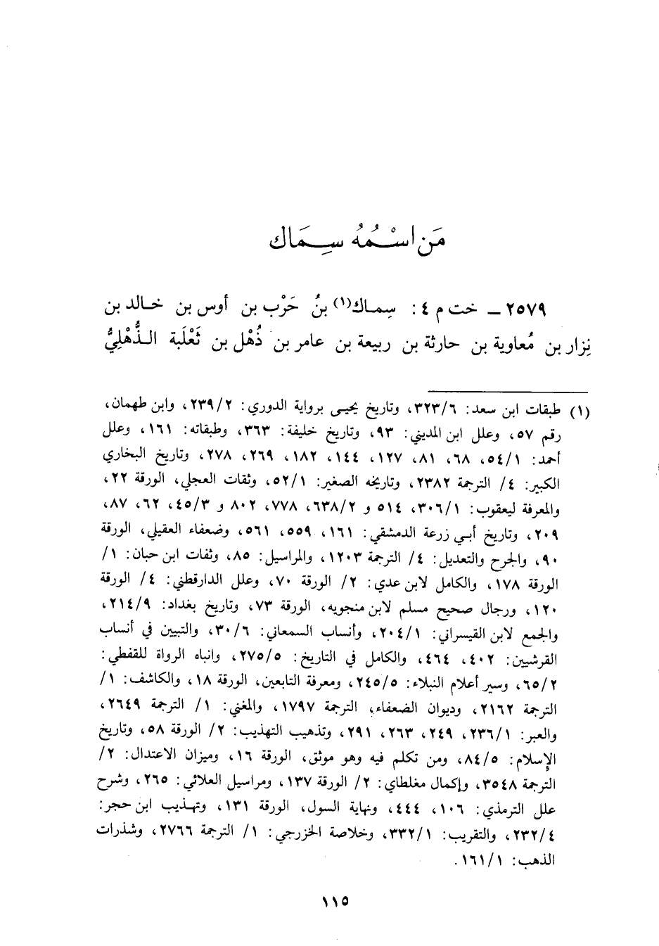 2579 - خت م 4: سماك بن حرب بن أوس بن خالد بن نزار بن معاوية بن حارثة بن ربيعة بن عامر بن ذهل بن ثعلبة الذهلي (1)