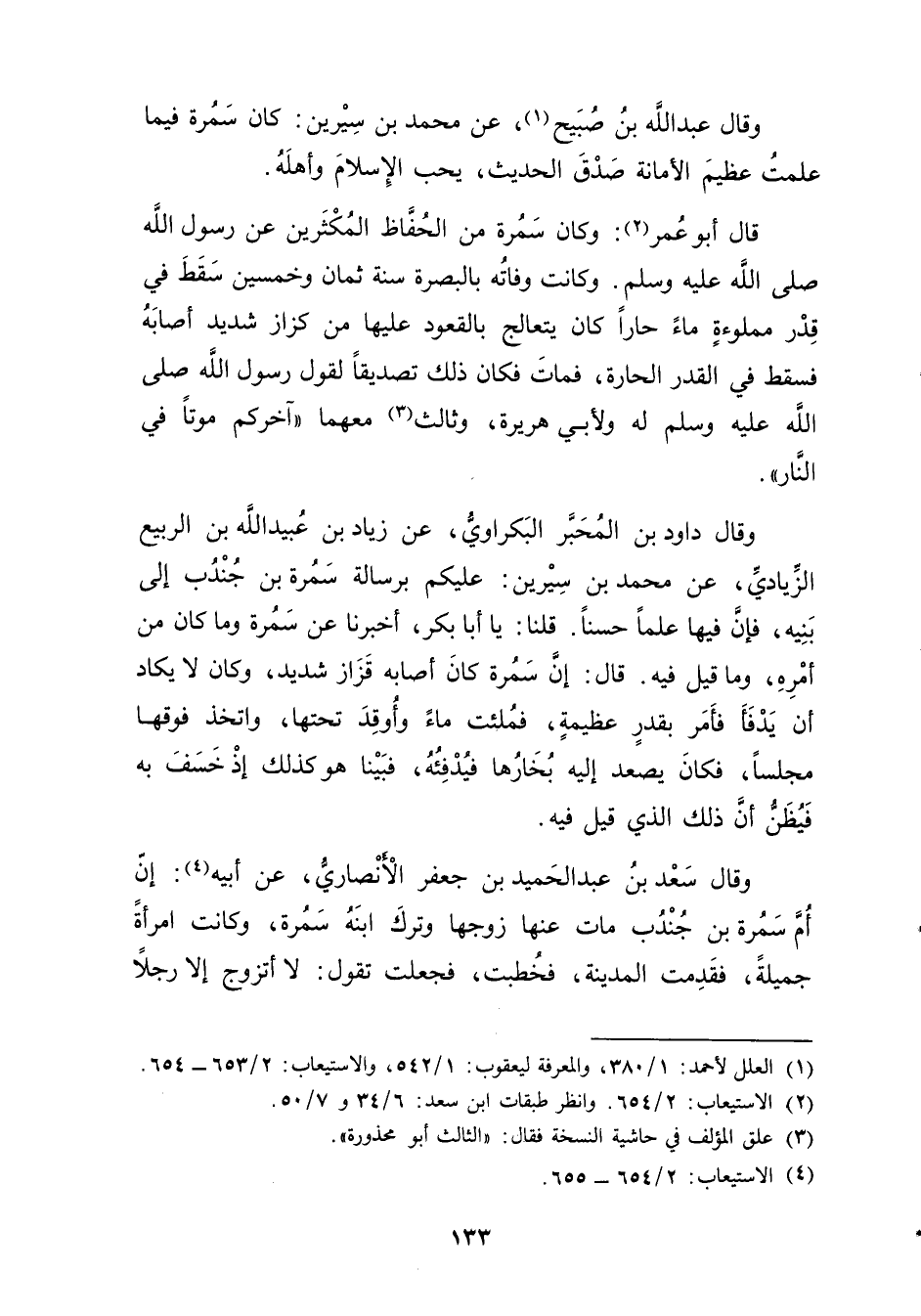 (1) العلل لأحمد: 1 / 380، والمعرفة ليعقوب: 1 / 542، والاستيعاب: 2 / 653 - 654.
