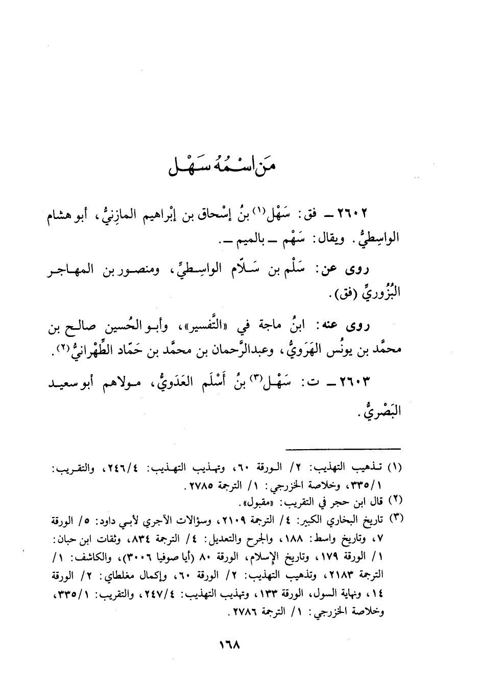 2602 - فق: سهل بْن إِسْحَاقَ بْن إِبْرَاهِيمَ المازني (1) ، أَبُو هشام الواسطي. ويُقال: سهم - بالميم -.