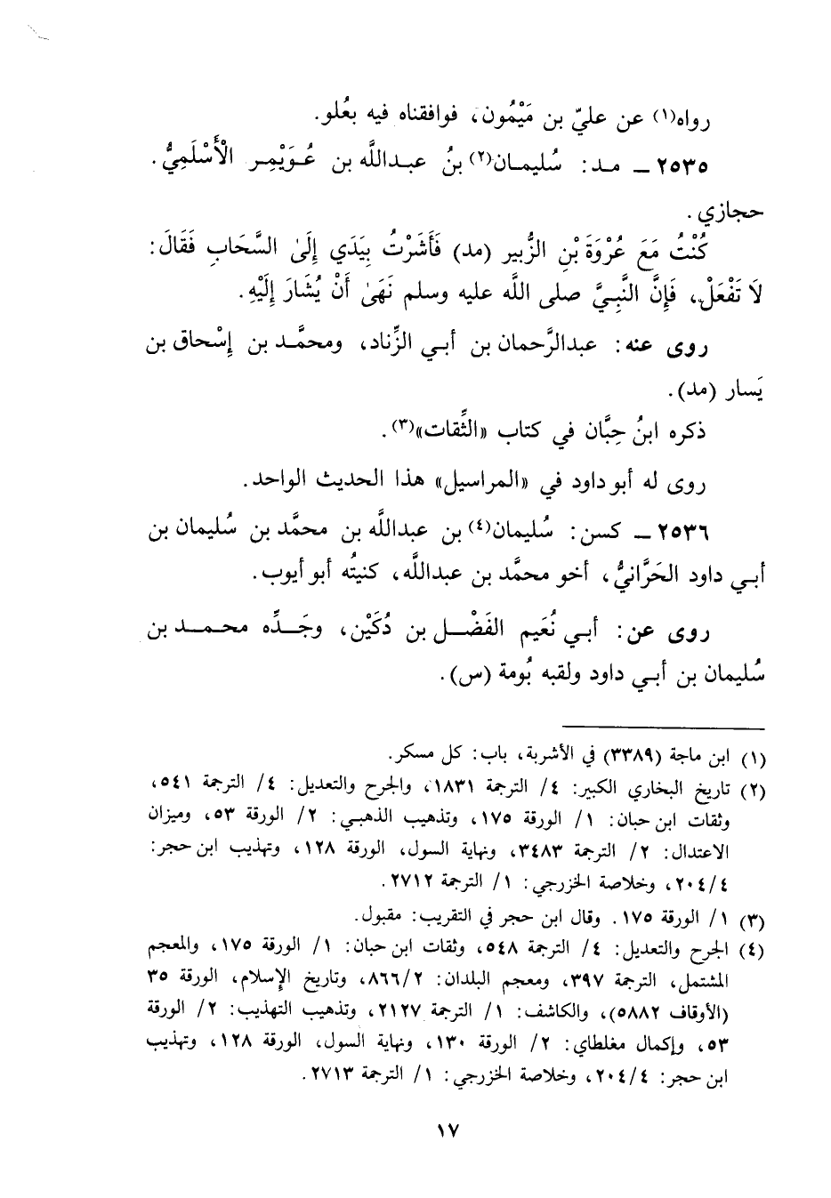 2535 - مد: سُلَيْمان بن عَبد اللَّهِ بن عويمر الأَسلميّ (2) . حجازي.
