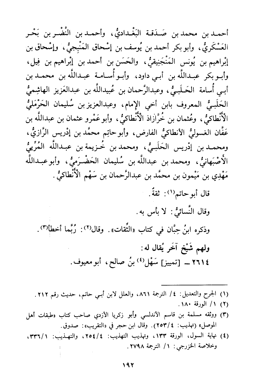 2614 - تمييز سهل بن صالح (4) ، أَبُو معيوف.