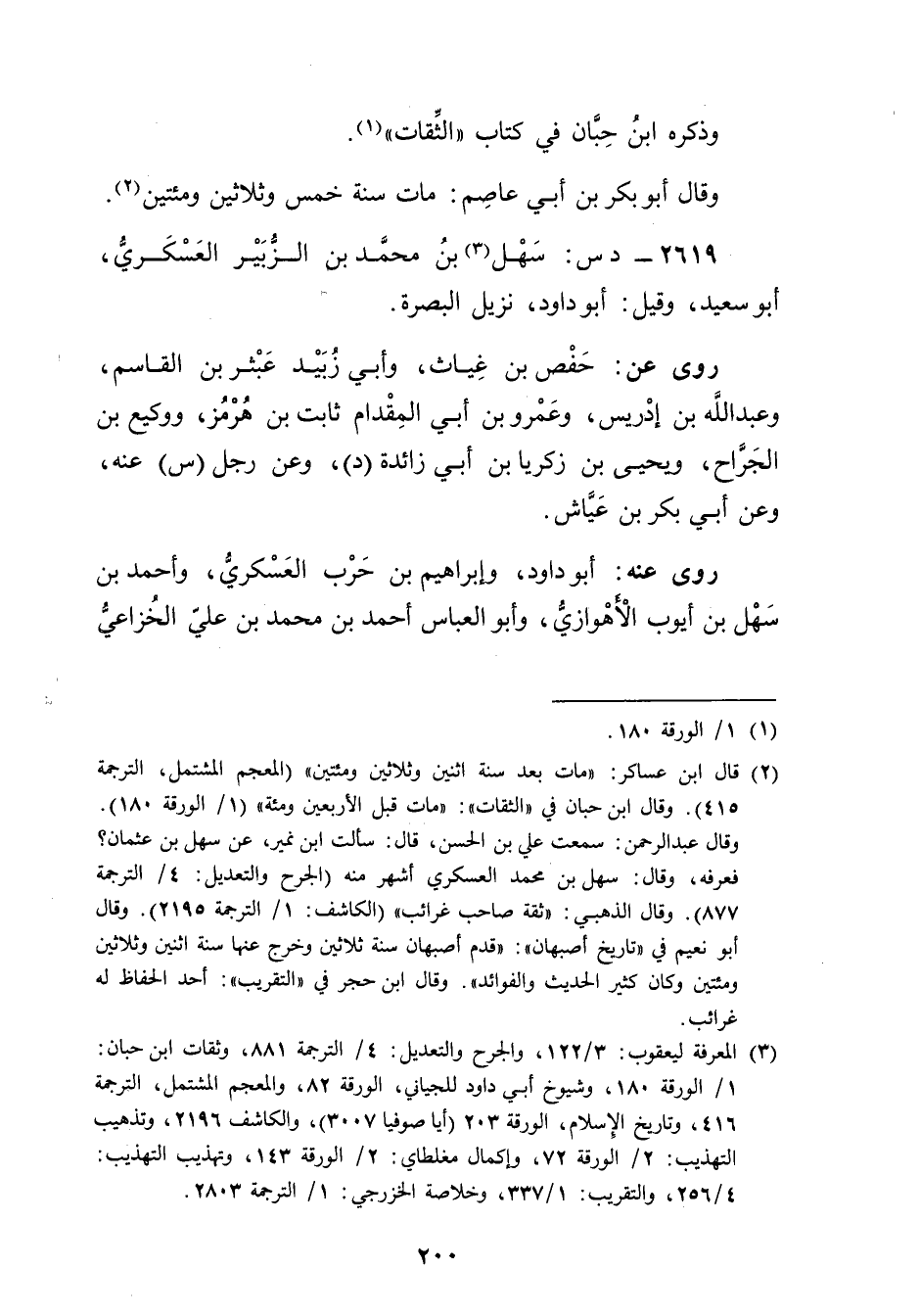 (3) المعرفة ليعقوب: 3 / 122، والجرح والتعديل: 4 / الترجمة 881، وثقات ابن حبان: 1 / الورقة 180، وشيوخ أبي داود للجياني، الورقة 82، والمعجم المشتمل، الترجمة 416، وتاريخ الاسلام، الورقة 203 (أيا صوفيا 3007) ، والكاشف 2196، وتذهيب التهذيب: 2 / الورقة 72، وإكمال مغلطاي: 2 / الورقة 143، وتهذيب التهذيب: