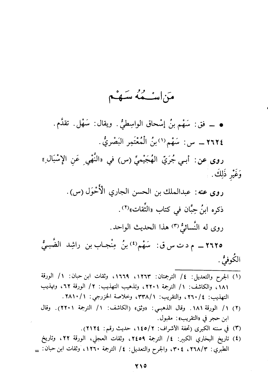 2625 - م د ت س ق: سهم بن منجاب بن راشد الضبي الكوفي (4) .