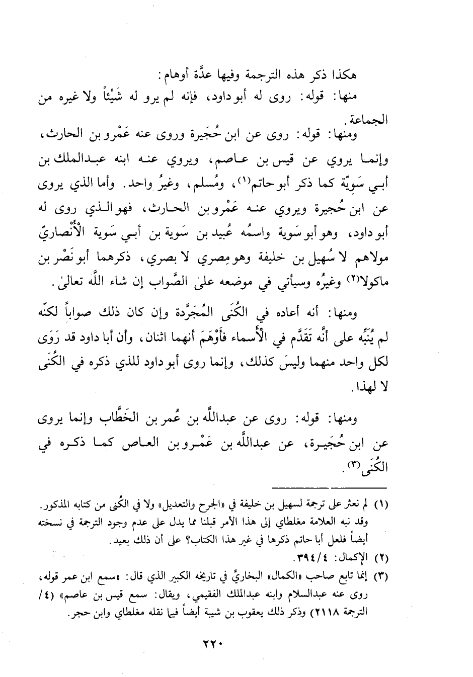(1) لم نعثر على ترجمة لسهيل بن خليفة في "الجرح والتعديل"ولا في الكنى من كتابه المذكور. وقد نبه العلامة مغلطاي إلى هذا الامر قبلنا مما يدل على عدم وجود الترجمة في نسخته أيضا فلعل أبا حاتم ذكرها في غير هذا الكتاب؟ على أن ذلك بعيد.