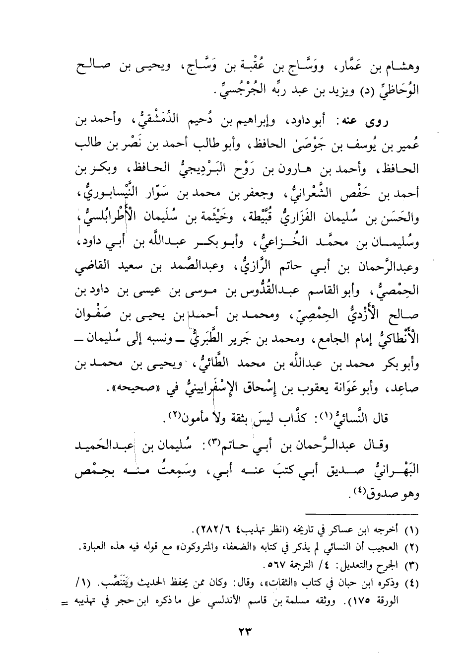 (2) العجيب أن النَّسَائي لم يذكر في كتابه"الضعفاء والمتروكون"مع قوله فيه هذه العبارة.