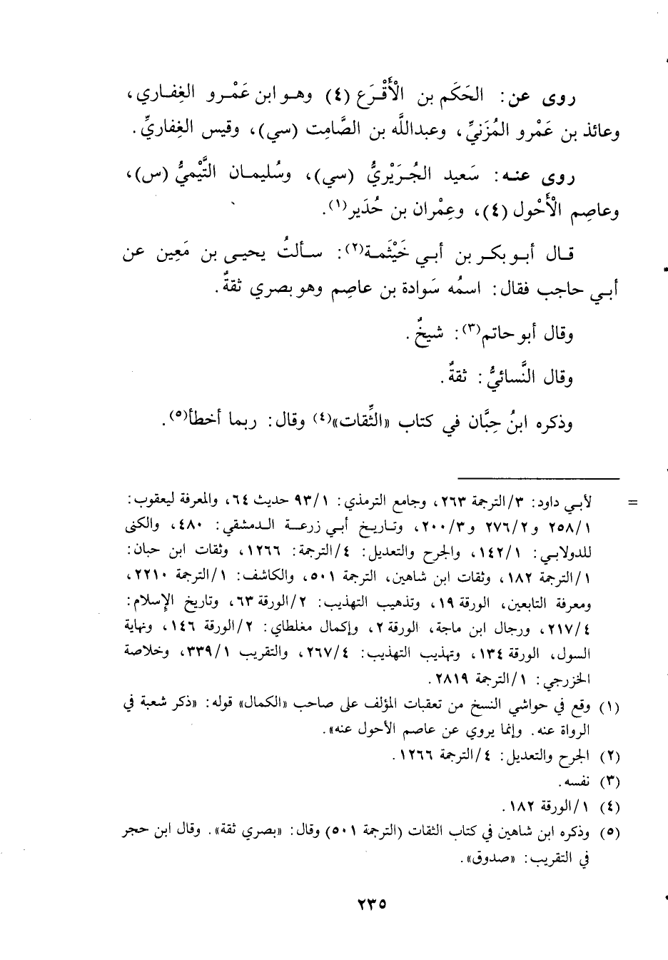 (5) وذكره ابن شاهين في كتاب الثقات (الترجمة 501) وَقَال: بصري ثقة". وَقَال ابن حجر في التقريب: صدوق".