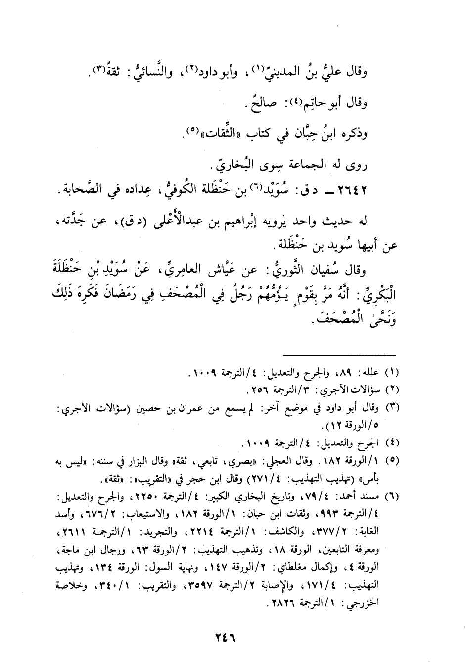 2642 - د ق: سويد بن حنظلة الكوفي (6) ، عداده في الصحابة.