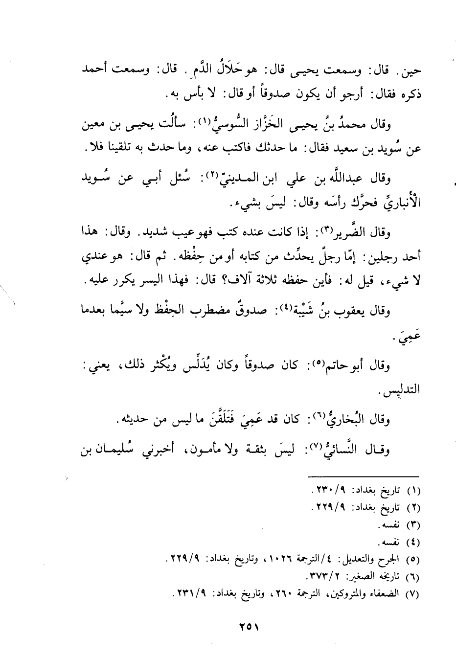 (7) الضعفاء والمتروكين، الترجمة 260، وتاريخ بغداد: 9 / 231.