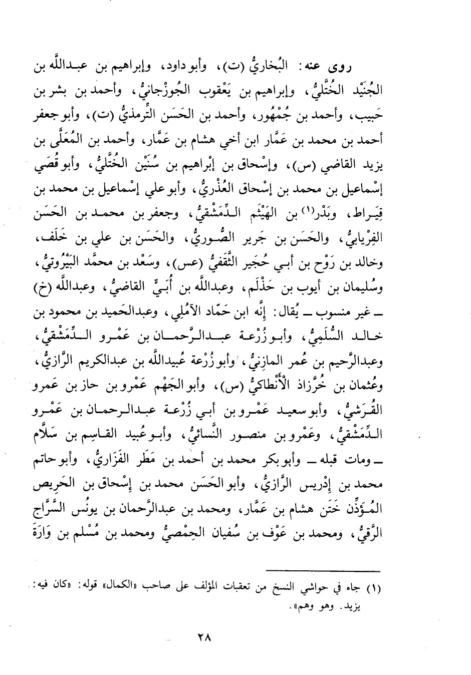 (1) جاء في حواشي النسخ من تعقبات المؤلف على صاحب "الكمال" قوله: كان فيه: يزيد. وهو وهم".