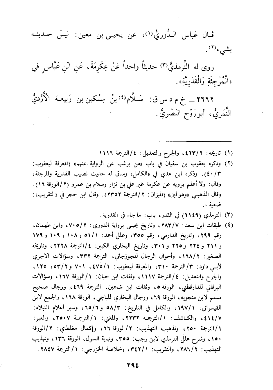 (4) طبقات ابن سعد: 7 / 283، وتاريخ يحيى برواية الدوري: 2 / 705، وابن طهمان، رقم 299، وتاريخ الدارمي، رقم 355، وعلل أحمد: 1 / 51 و108 و109 و179 و211 و224 و225 و301، وتاريخ البخاري الكبير: 4 / الترجمة 2228، وتاريخه