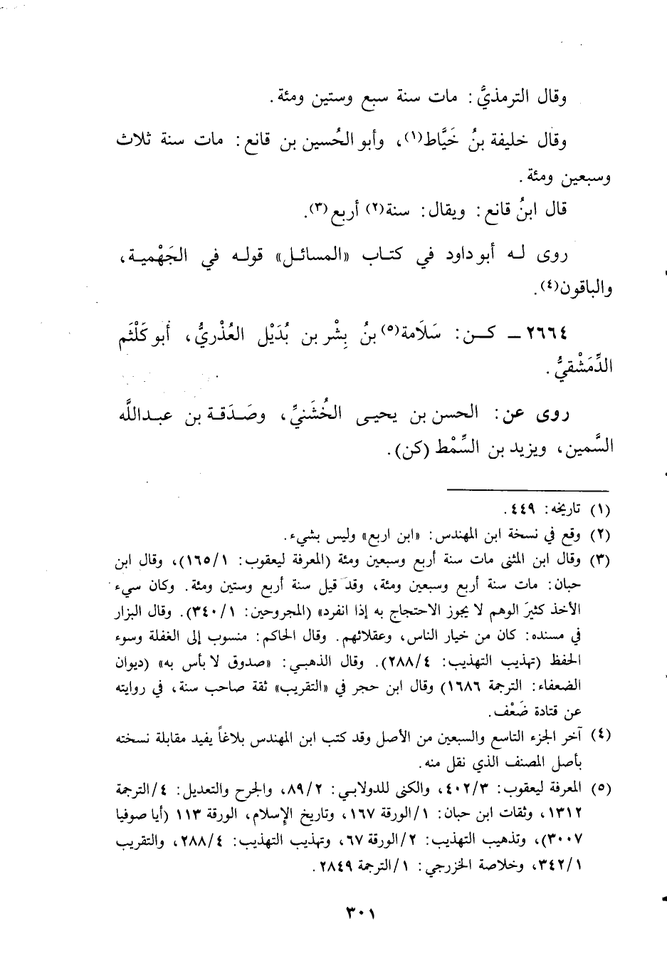 (5) المعرفة ليعقوب: 3 / 402، والكنى للدولابي: 2 / 89، والجرح والتعديل: 4 / الترجمة 1312، وثقات ابن حبان: 1 / الورقة 167، وتاريخ الاسلام، الورقة 113 (أيا صوفيا 3007) ، وتذهيب التهذيب: 2 / الورقة 67، وتهذيب التهذيب: 4 / 288، والتقريب 1 / 342، وخلاصة الخزرجي: 1 / الترجمة 2849.