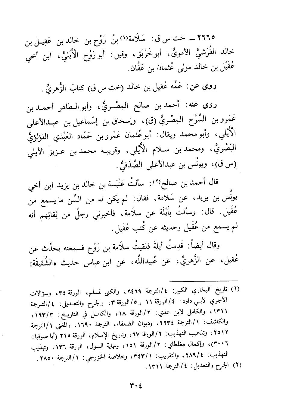 2665 - خت س ق: سلامة بن روح بن خالد بن عقيل بن خالد القرشي الأُمَوِي (1) ، أبوخربق، وقيل: أَبُو روح الأيلي، ابْن أخي عقيل بن خالد مولى عثمان بْن عفان.