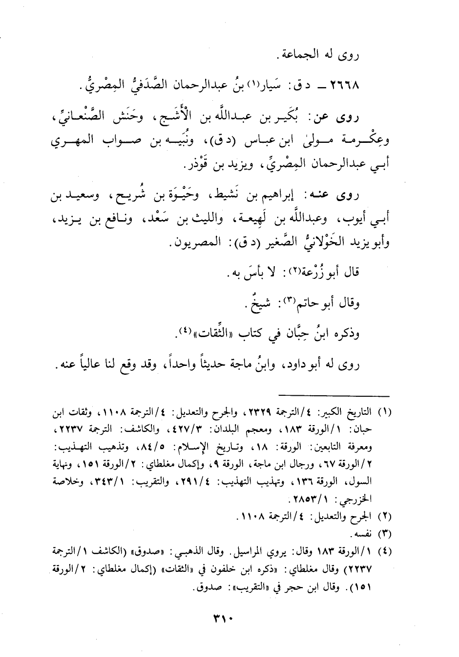 (4) 1 / الورقة 183 وَقَال: يروي المراسيل. وَقَال الذهبي: صدوق" (الكاشف 1 / الترجمة 2237) وَقَال مغلطاي: ذكره ابن خلفون في "الثقات" (إكمال مغلطاي: 2 / الورقة 151) . وَقَال ابن حجر في "التقريب": صدوق.