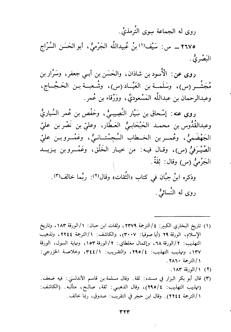 2675 - س: سيف بن عُبَيد اللَّه الجرمي (1) ، أَبُو الحسن السراج البَصْرِيّ.