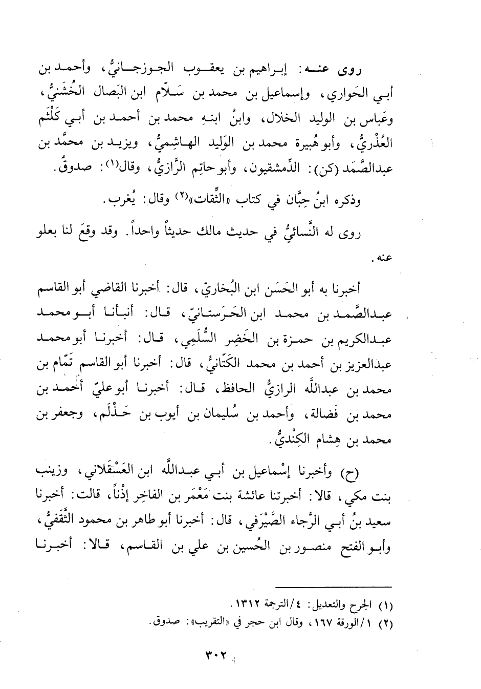 (3) طبقات ابن سعد: 6 / 387، وتاريخ يحيى برواية الدوري: 2 / 246، وابن طهمان، الترجمة 312، وتاريخ البخاري الكبير: 4 / الترجمة 2377، وأبو زُرْعَة الرازي: 460، وسؤالات الآجري لابي داود: 5 / الورقة 35، والمعرفة ليعقوب: 3 / 38، والضعفاء والمتروكين للنسائي، الترجمة 254، والجرح والتعديل: 4 / الترجمة 1191، والمجروحين لابن حبان: 1 / 346، والكامل لابن عدي: 2 / الورقة 60، وثقات ابن شاهين، الترجمة 493، والضعفاء والمتروكين للدارقطني، الترجمة 282، وسؤالات البرقاني له، الترجمة 203، والانساب للسمعاني: 2 / 129، والضعفاء لابن الجوزي، الورقة 73، والكاشف: 1 / الترجمة 2247، وديوان الضعفاء، الترجمة 1851 والمغني: 1 / الترجمة 2723، وتذهيب التهذيب: 2 / الورقة 68، وتاريخ الاسلام، الورقة 80 (أيا صوفيا: 3006) ، وميزان الاعتدال: 2 / الترجمة 3643، وإكمال مغلطاي: 2 / الورقة 153، ونهاية السول، الورقة 137، وتهذيب التهذيب: 4 / 297، والتقريب: 1 / 344، وخلاصة الخزرجي: 1 / الترجمة 2863.