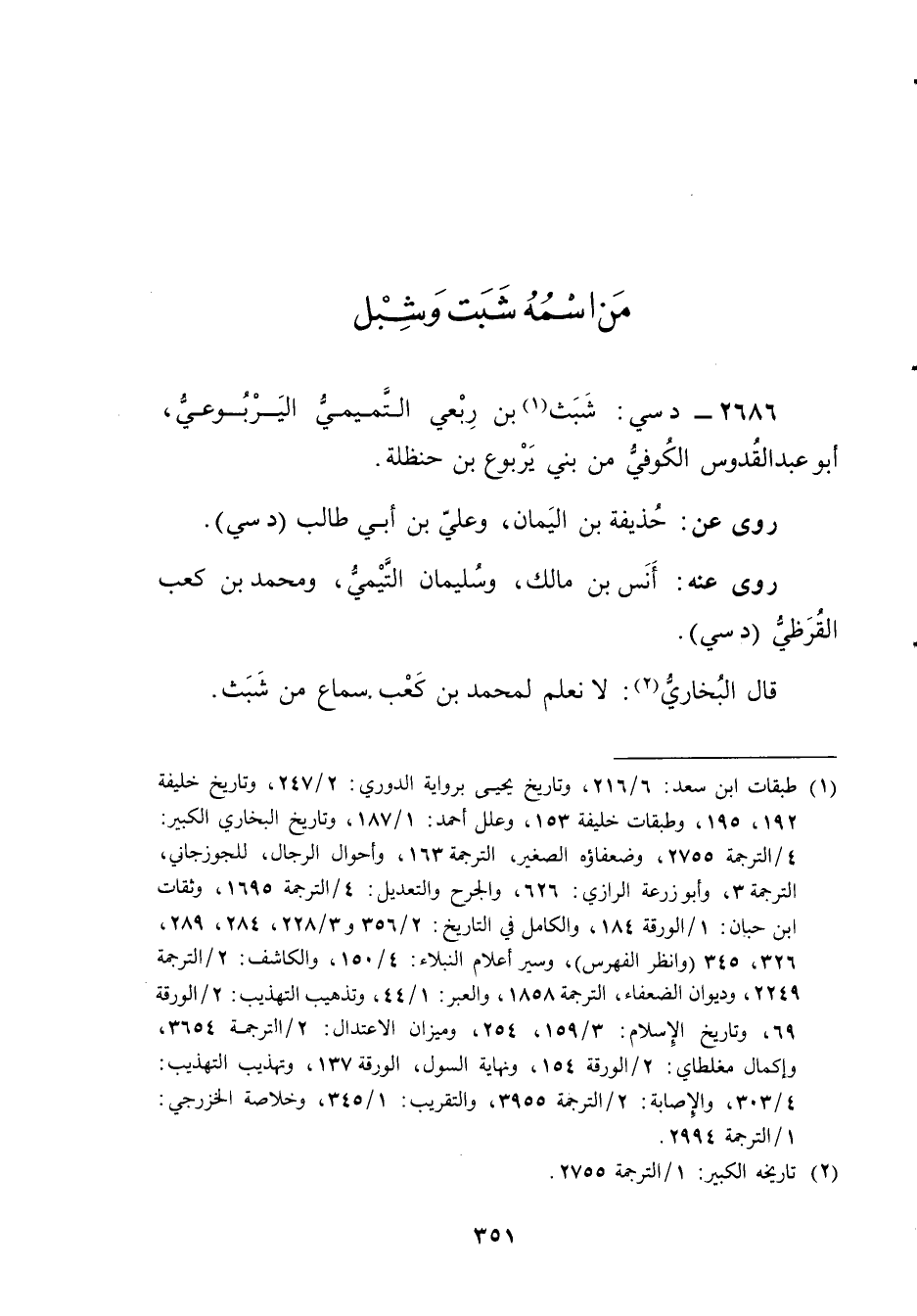 2686 - د سي: شبث بن ربعي التميمي اليربوعي (1) ، أَبُو عَبْد القدوس الكوفي من بني يربوع بْن حنظلة.