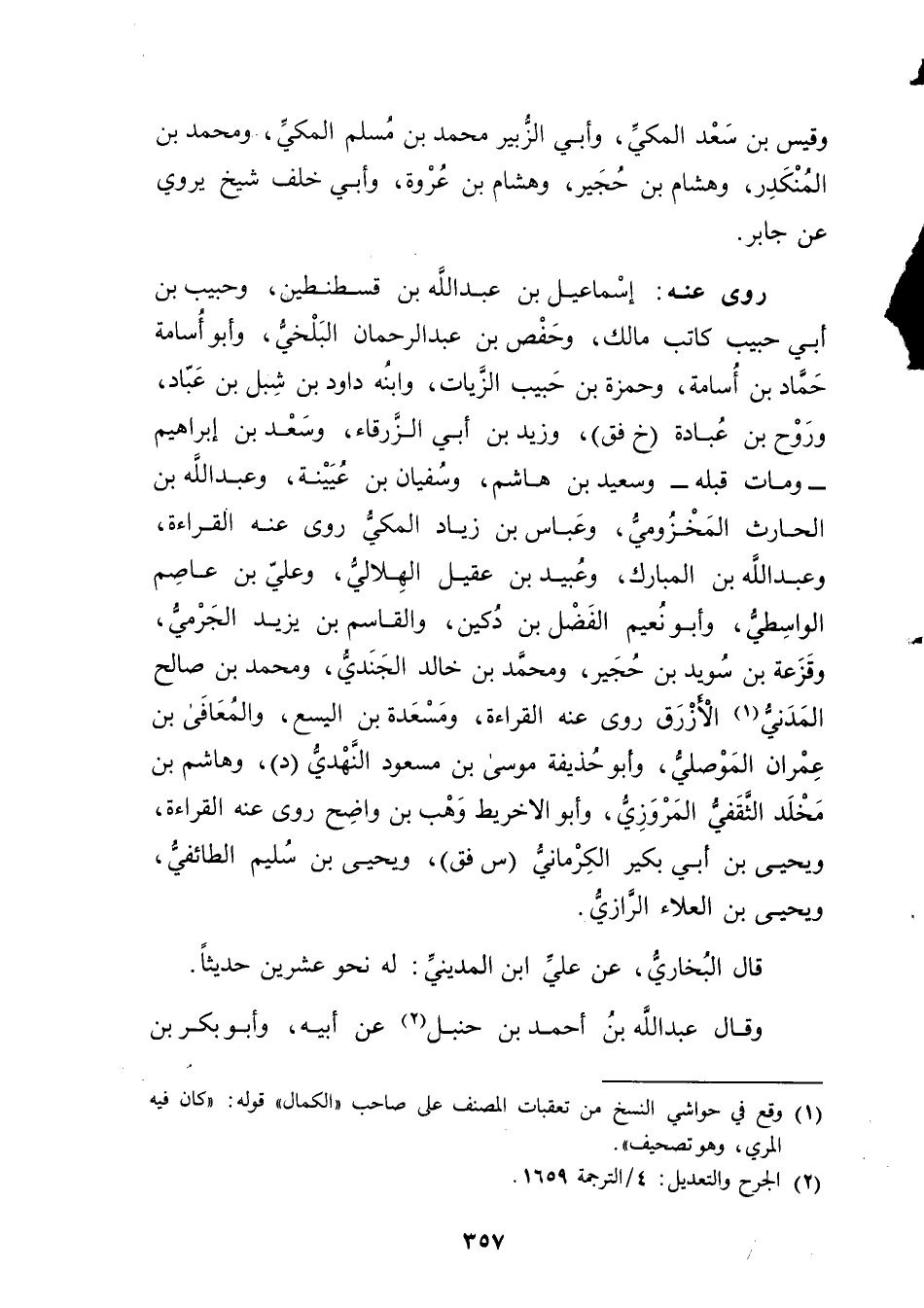 (1) وقع في حواشي النسخ من تعقبات المصنف على صاحب "الكمال" قوله: كان فيه المري، وهو تصحيف.