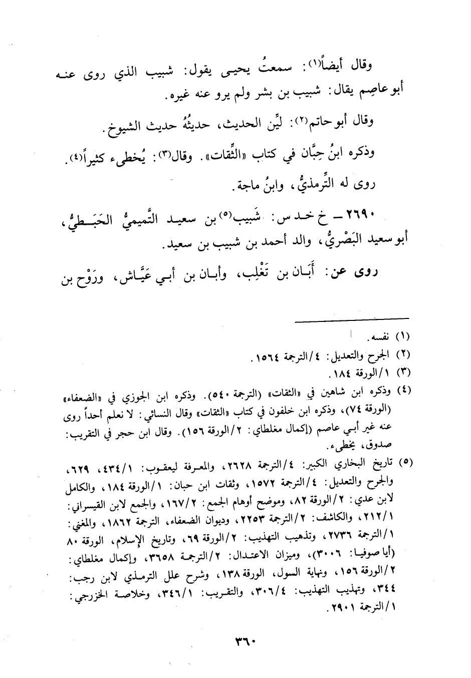 2690 - خ خد س: شبيب بن سَعِيد التميمي الحبطي (5) ، أَبُو سَعِيد البَصْرِيّ، والد أَحْمَد بْن شبيب بْن سَعِيد.