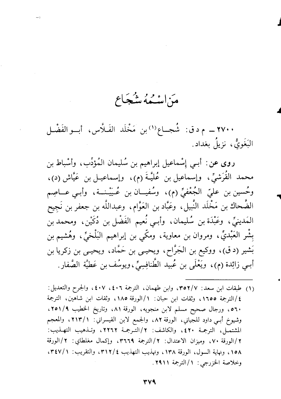 2700 - م د ق: شجاع بن مخلد الفلاس (1) ، أَبُو الفضل البغوي، نزيل بغداد.