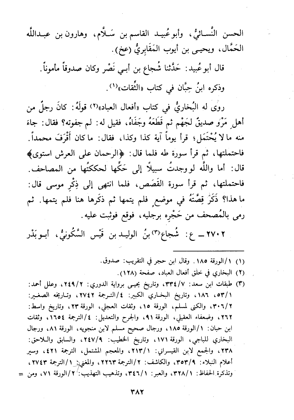 2702 - ع: شجاع بن الْوَلِيد بن قيس السكوني (3) ، أَبُو بدر