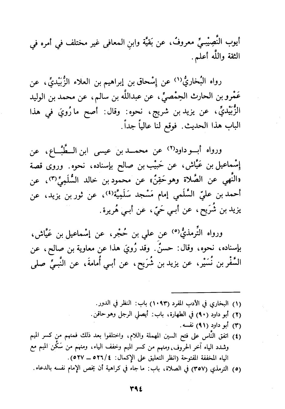 ورَوَاهُ التِّرْمِذِيّ (5) عَنْ عَلِيِّ بْنِ حجر، عَنِ إسماعيل بْن عياش، بإسناده، نحوه، وَقَال: حسن. وقد روي هذا عَنْ معاوية بْن صالح، عَنِ السفر بْن نسير، عَنْ يَزِيدَ بْنِ شُرَيْحٍ، عَن أَبِي أُمَامَةَ، عَنِ النَّبِيِّ صَلَّى