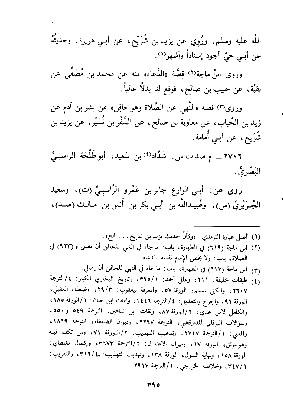 2706 - م صد ت س: شداد بن سَعِيد (4) ، أَبُو طلحة الراسبي البَصْرِيّ.
