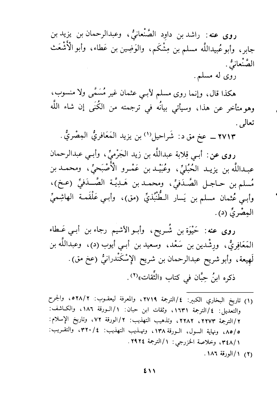 2713 - عخ مق د: شراحيل بن يزيد المعافري المِصْرِي (1) .