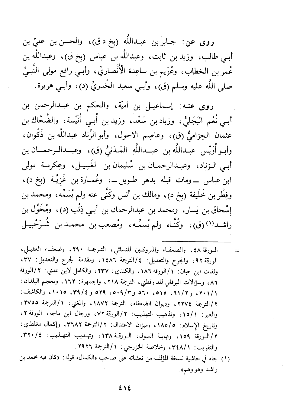 (1) جاء في حاشية نسخة المؤلف من تعقباته على صاحب "الكمال" قوله: كان فيه محمد بن راشد وهو وهم".