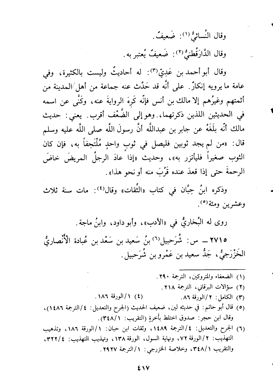 (6) الجرح والتعديل: 4 / الترجمة 1489، وثقات ابن حبان: 1 / الورقة 186، وتذهيب التهذيب: 2 / الورقة 72، ونهاية السول، الورقة 138، وتهذيب التهذيب: 4 / 322، والتقريب 1 / 348، وخلاصة الخزرجي: 1 / الترجمة 2927.